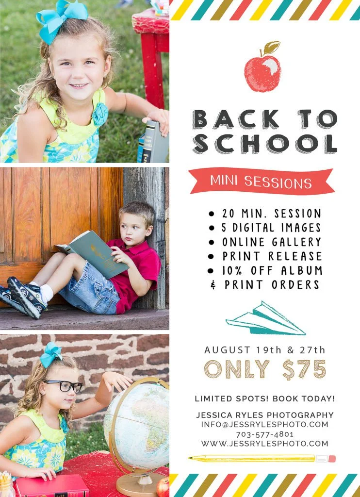 Are you ready to show off those new backpacks and special back to school outfits? Sign up for a styled mini-session today!