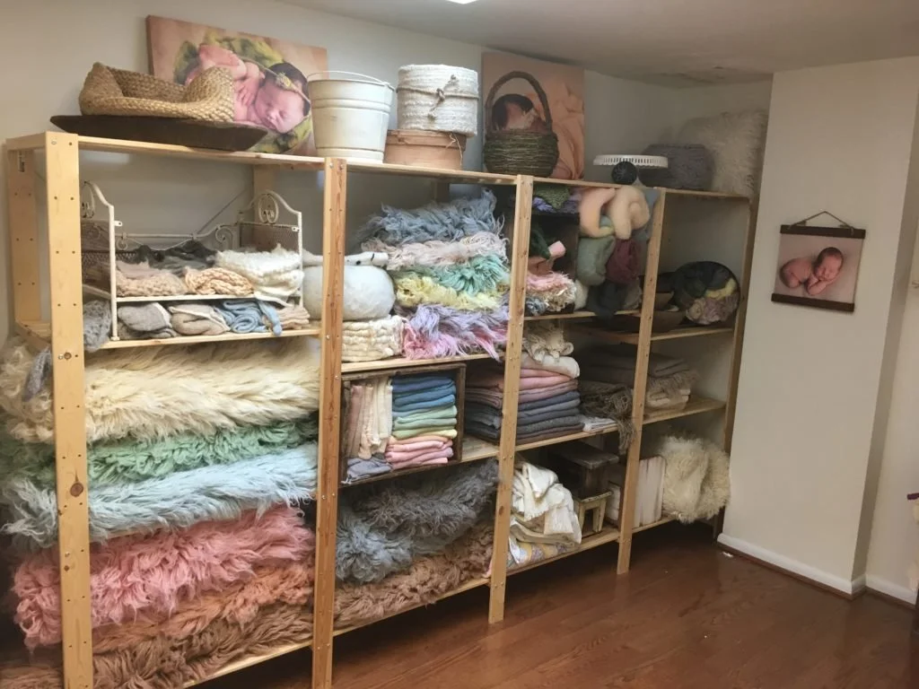 I have to admit though, I am supremely jealous of her studio space. Look at this prop organization! I would give my right arm to have this sort of dedicated space for a collection of newborn blankets, wraps, and headbands.